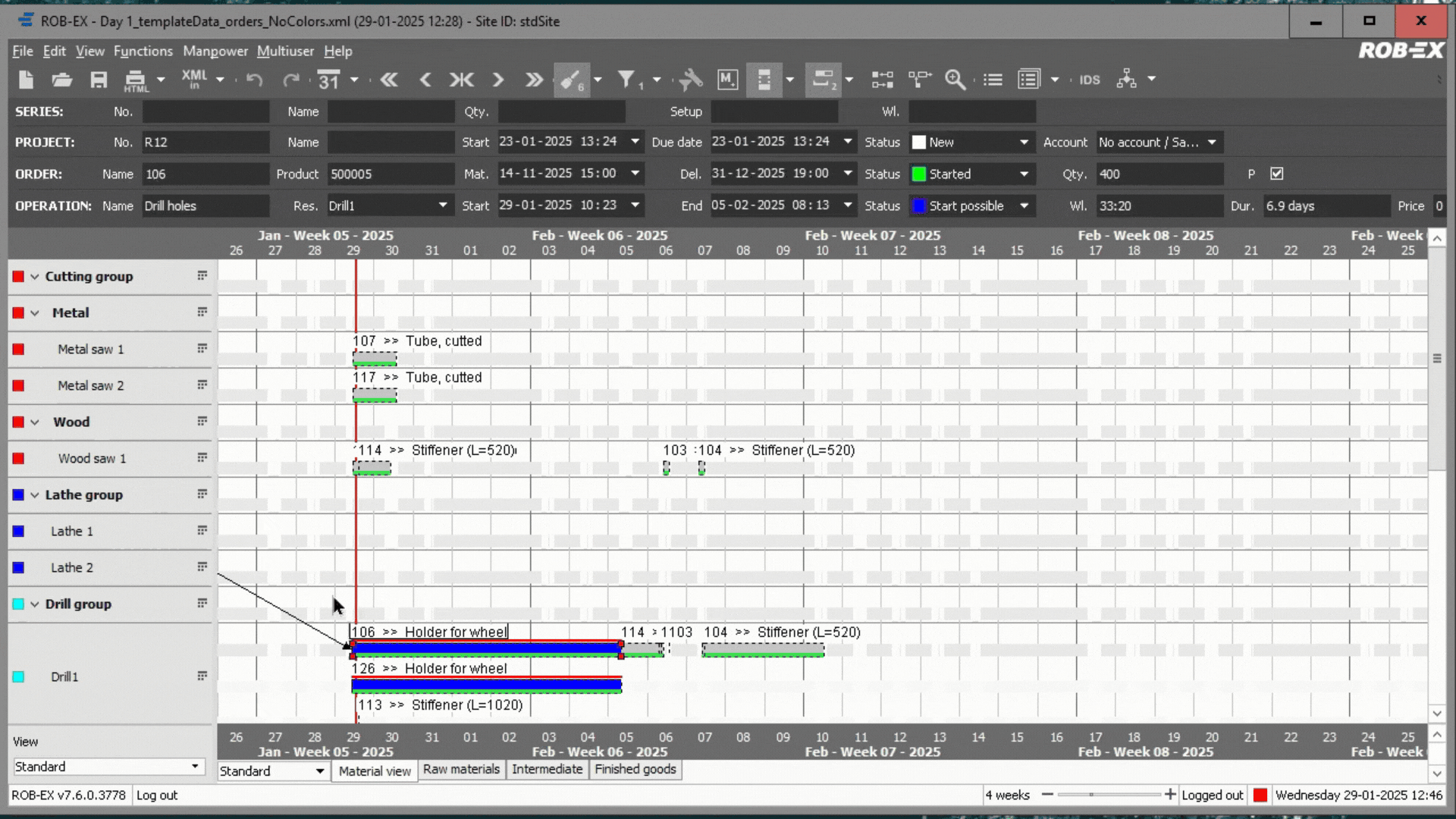 - Planificación finita de capacidad (CRC/FCS) sobre máquinas, operarios, herramientas y materiales