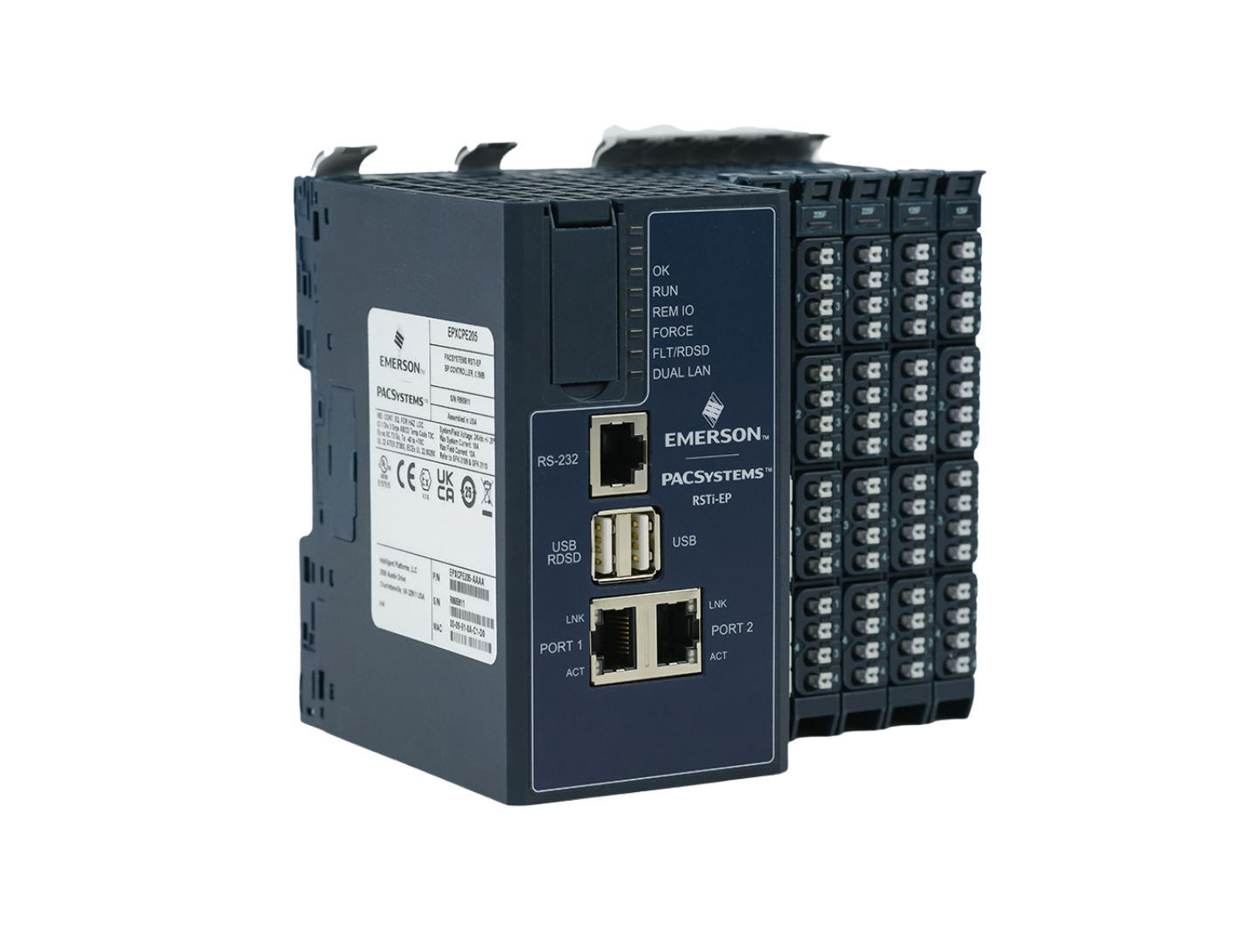 Controlador compacto PACSystems CPE200 de Emerson con backplane integrado, mismo runtime que el RX3i, programación en C nativa y hasta 3 puertos Gigabit. Ofrece la capacidad de un PLC de gama alta en formato reducido y económico, con conectividad IIoT y ciberseguridad certificada desde el diseño.